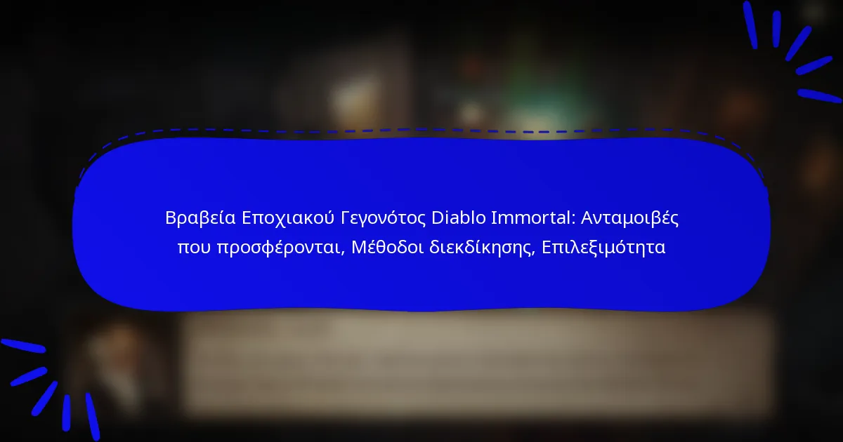 Diablo Immortal Ειδικές Εκδηλώσεις Ανταμοιβές: Μοναδικά βραβεία, Οδηγίες διεκδίκησης, Χρονικό διάστημα
